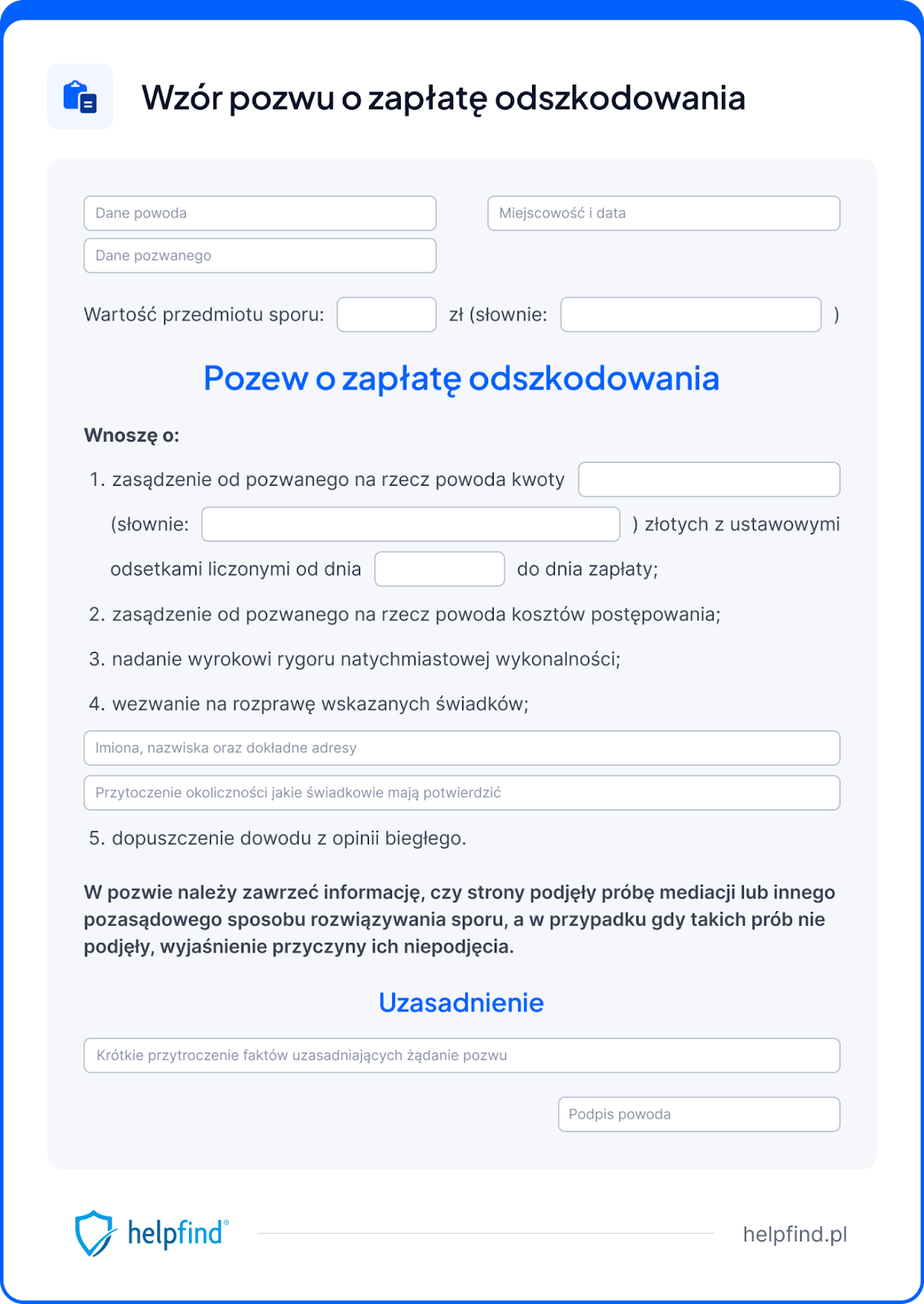 - Wzór treści pozwu o odszkodowanie